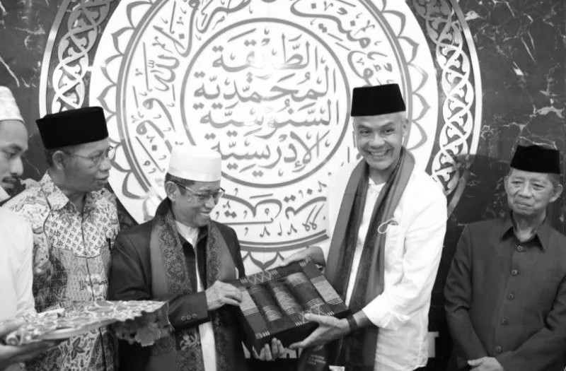 GUBERNUR Jawa Tengah Ganjar Pranowo menemui Rais Syuriah Pimpinan Cabang Nahdlatul Ulama Makassar, KH Anne Gurutta Haji (AGH) Dr Baharuddin, di kediaman pribadinya, Jalan Jenderal Yusuf, sebelum meninggalkan Makassar, Sulawesi Selatan, Minggu (8 Mei 2022).